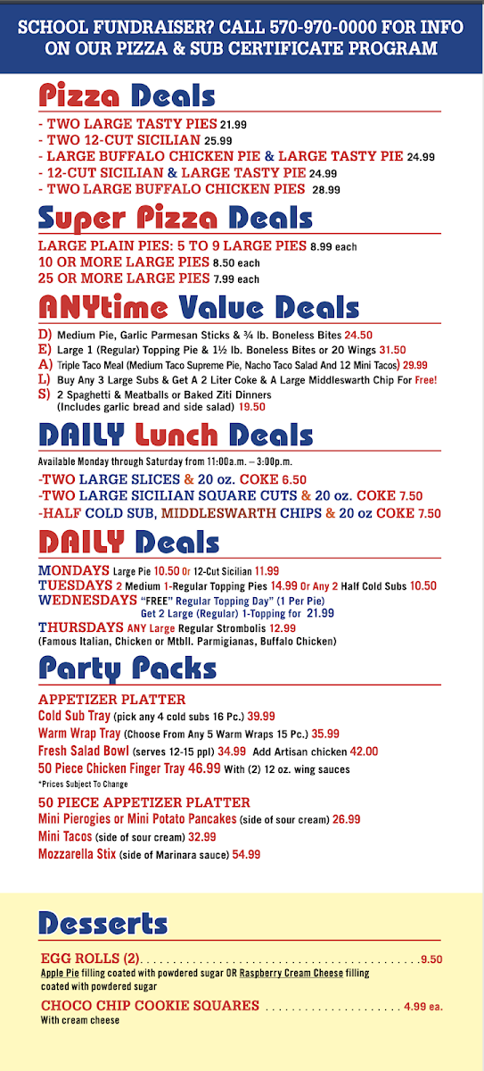 Welcome to Pizza Bella - Nanticoke, where delicious flavors meet exceptional service! Located at 302 E Noble St, this charming pizza shop is famed for its mouthwatering pizzas, including a beloved Wednesday special featuring their unique sweet sauce that has delighted many customers.
